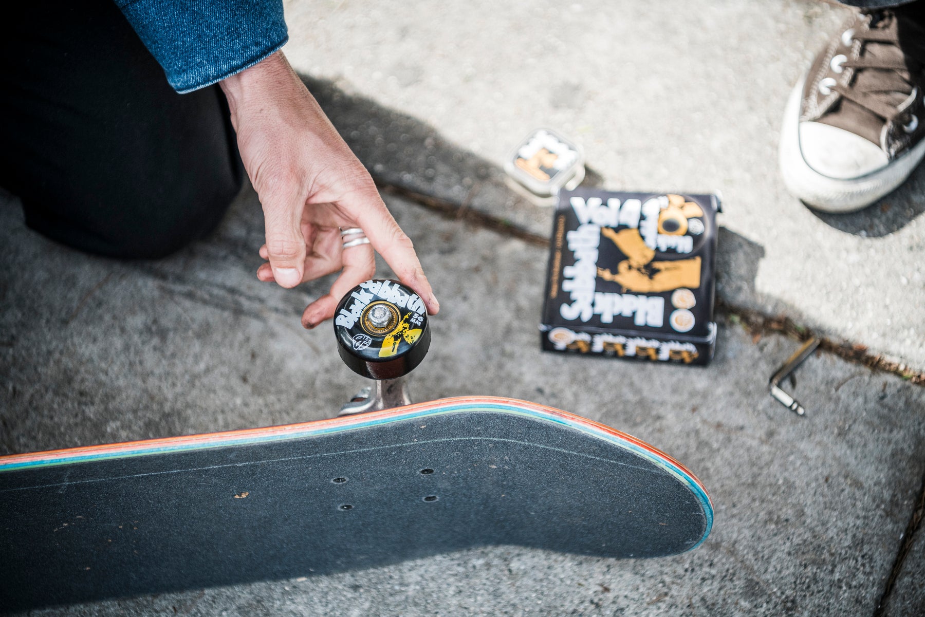 The OJ Wheels Black Sabbath Vol. 4 Black 56mm, 78a Key Frame Wheels feature Black Sabbath Vol. 4 artwork on our black 78a urethane with a yellow core.